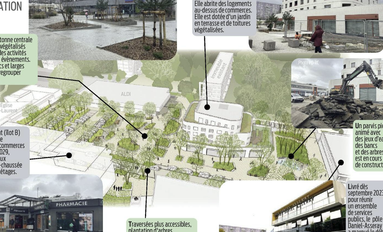 L’ilôt A (résidence Josette Bock) est presque fini, la pharmacie sera transférée fin mars et les autres commerces, la boulangerie et la presse, suivront rapidement. Un qu