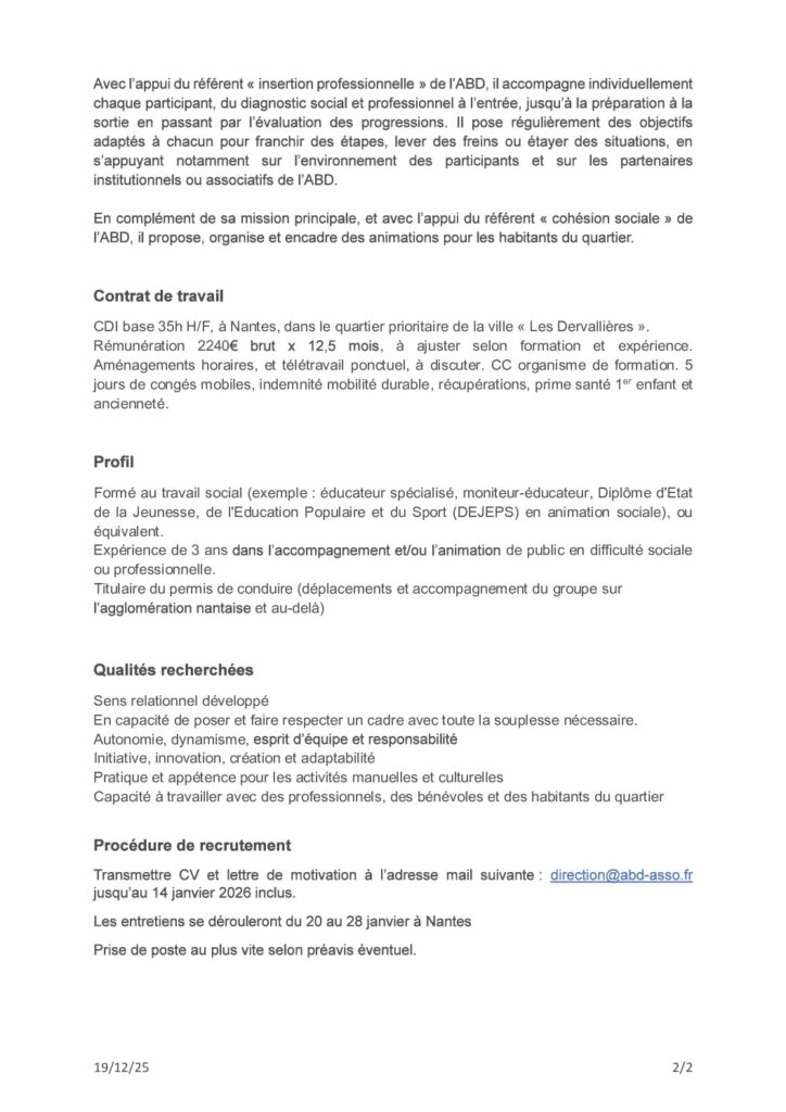Envoyer lettre et CV à direction@abd-asso.fr jusqu’au 14/01/25